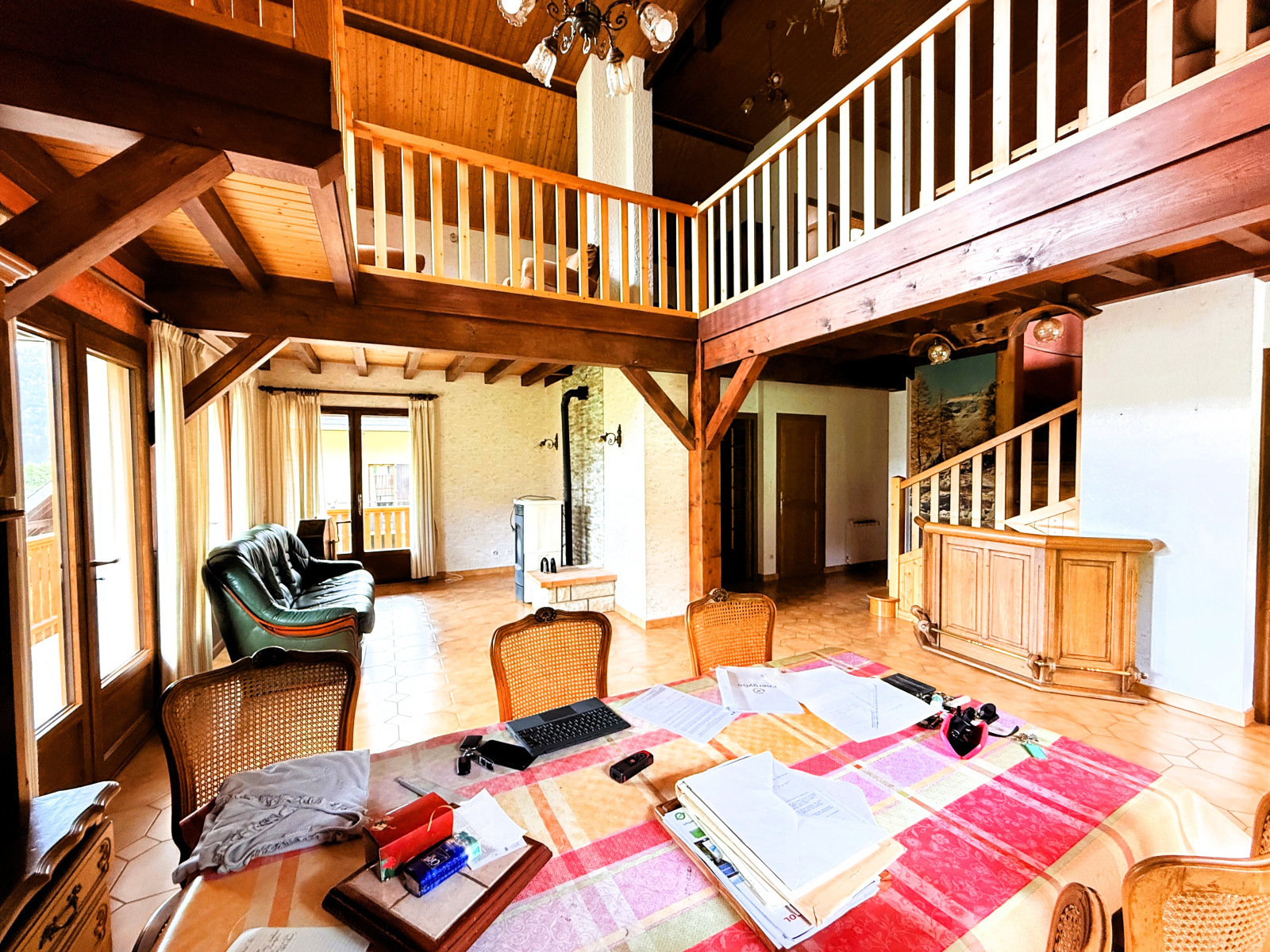 À l’étage, une spacieuse mezzanine de 34 m², baignée de lumière, s’ouvre sur un balcon avec une vue imprenable sur Chamechaude. Vous y trouverez également une grande chambre d’environ 26 m² avec de nombreux rangements, une salle de bains et un WC séparé. La mezzanine peut aisément être fermée afin de créer une quatrième chambre confortable.